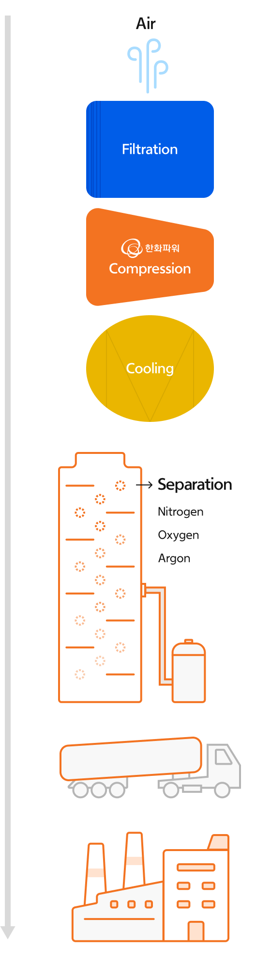 The Main Air Compressor(MAC) is the core equipment that compresses intake air up to 6 bar A to supply compressed air for air separation processes.